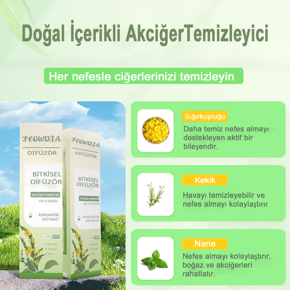 İster sigarayı bırakmış olun, ister azaltmak isteyin, akciğerlerinizin derinlemesine temizliğe ihtiyacı var. Flowdia'nın%100 doğal formülü, solunum yollarınızı ferahlatmak ve nefes kalitenizi artırmak için özel olarak tasarlandı.